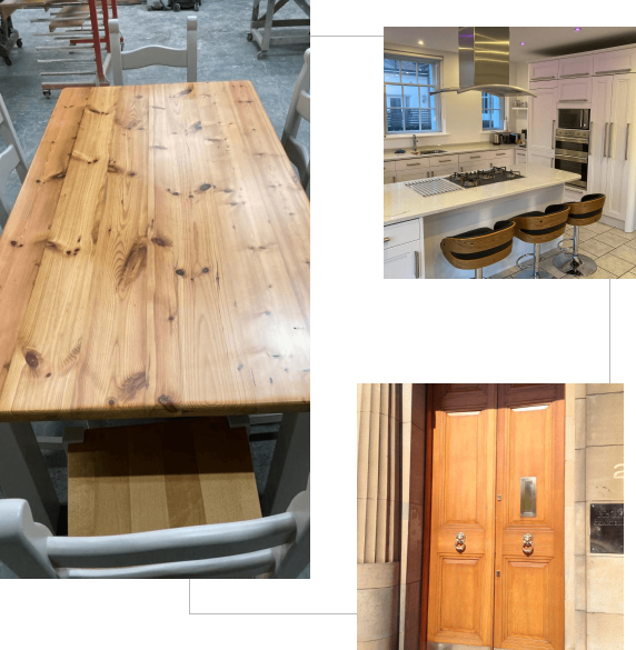 We recognise that the final finish depends on a unique approach to each job, resting on a foundation of expertise and experience. You can rest assured that we have the spray painting expertise you need for your specific project. Our spray painting services in Edinburgh include kitchen painting, shop fronts, ceiling and walls painting, metal works and more (completed onsite) and furniture and MDF spray painting (completed in our workshop).